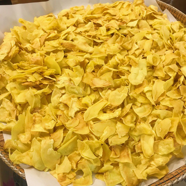 ทุเรียนทอด ทุเรียนดิบแผ่นบางทอดจนเหลืองกรอบ คลุกเกลือนิด ๆ กรอบ มัน เค็ม เคี้ยวเพลินจนหยุดไม่ได้!
