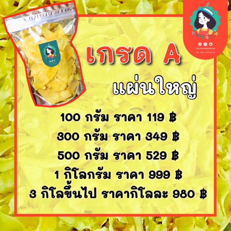 ทุเรียนทอด คัดวัตถุดิบ ใส่ใจ ตั้งแต่ปลูกลงดิน มาทอดด้วย เทคนิคเฉพาะ แล้วอบซ้ำ 2 รอบ ทุเรียนทอด พรีเมี่ยม durianchip ทุเรียนทอด ราคาตัวแทน คัดสรร. ผู้ประกอบการธุรกิจ เอสเอ็มอี รายใดที่สนใจนำสินค้ามาจำหน่ายที่ เซเว่น อีเลฟเว่น เหมือนผลไม้แปรรูปชาย. วิธีการทอดทุเรียนนั้นไม่ยาก สำหรับใครที่อยากลองทำเองที่บ้าน ทอดกินเล่นๆ ใส่เกลือนิดๆ กินเพลินทั้งวัน สวัสดีค่ะเพื่อนๆ วันนี้จะขอรีวิวทุเรียนทอด แบบเปิดชิมกันอย่างละเมียด เทียบกันให้เห็นจะจะ เจ้าไหนดี เจ้าไหนเด็ด. พอดีเพื่อนๆ หลายคน ได้ลองชิมทุเรียนทอด ที่เราเอามาฝาก แล้วอยากขอซื้อบ้าง ทุเรียนทอดชายน้อย กรอบ อร่อย หวาน มัน. ก็แพง เลยลองหาข้อมูลในเน็ต เจอเจ้านึง(ขอไม่บอกชื่อ) feedback ถือว่าดีเลยแหละ สั่งตรงจากระยองราคา. ทอดในกระทะใบใหญ่ ใส่น้ำมันปาล์ม 1 ½ ปีป ตั้งไฟจนน้ำมันร้อนจัด แล้วลดความร้อนลงใช้ไฟปานกลาง นําทุเรียนที่หั่นไว้ลงทอดครั้ง. ทุเรียนทอด ทุเรียนดิบแผ่นบางทอดจนเหลืองกรอบ คลุกเกลือนิด ๆ กรอบ มัน เค็ม เคี้ยวเพลินจนหยุดไม่ได้! #ทุเรียนทอด #ทุเรียนอบกรอบ #ทุเรียนหมอนทอง #ทุเรียน #หมอนทองจันทบุรี #หมอนทองแท้ #ทอดกรอบ #สดใหม่ทุกวัน #หวานมัน #อร่อยจนหยุดไม่อยู่ #อร่อยทุกชิ้น. ทุเรียนทอดกินเพลิน ๆ แผ่นใหญ่เต็มคำ กรอบมันถึงใจ กินได้กินดี กินเพลินได้ทั้งวัน รู้ตัวอีกทีหมดถุงไปแล้วดื้อ ๆ แถมยังมีหลากหลายไซซ์ให้. 40/5 ถ.แหลมยาง ต.ทางเกวียน อ.แกลง จ.ระยอง 21110 โทร : พอดีเพื่อนๆ หลายคน ได้ลองชิมทุเรียนทอด ที่เราเอามาฝาก แล้วอยากขอซื้อบ้าง